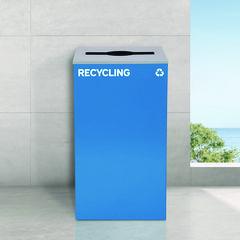 Set of 3, 29 gal Cans-Includes one blue Recycling Can with Mixed Lid, one green Recycling Can and one black Trash Can both with Square Lids. Waste Receptacle Type: Indoor Recycling/Trash Bin; Material(s): Steel; Application: Indoor Recycling; Indoor All-P